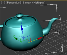 - Create a teapot in the Perspective viewport. Do not make it very large, because you will make several copies of it.